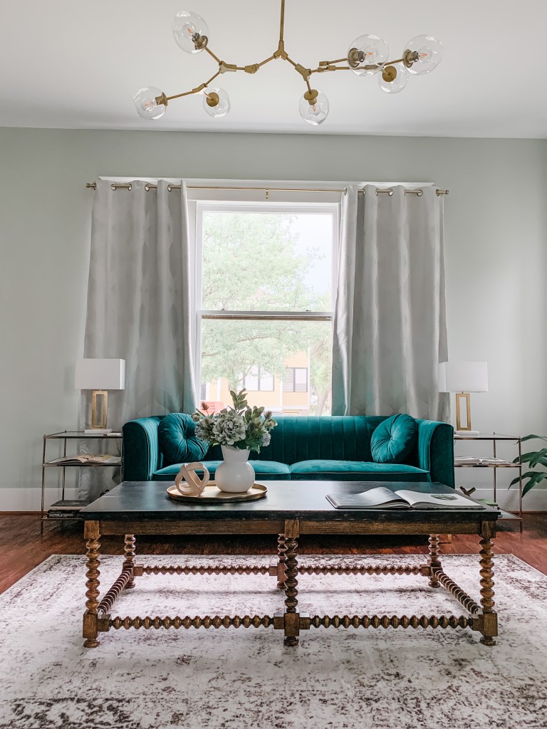 The house was originally built in 1915 as a boarding house. Much of the original charm had been layered over by many years of ownership changing hands, making updates that did not honor the history of the home. I wanted to bring this beauty back to life with the Victorian time period leading my design intent. The time this house was built in was all about opulence – luxe fabrics, rich patterns, everything was just a little bit too much. I wanted to take that luxe approach and modernize it while also keeping comfort in mind (this would be a beach rental after all). The result was a color palette of layered greens, golds, warm toned woods, and black iron. Check out more photos below and drop a line or question in the comment section!