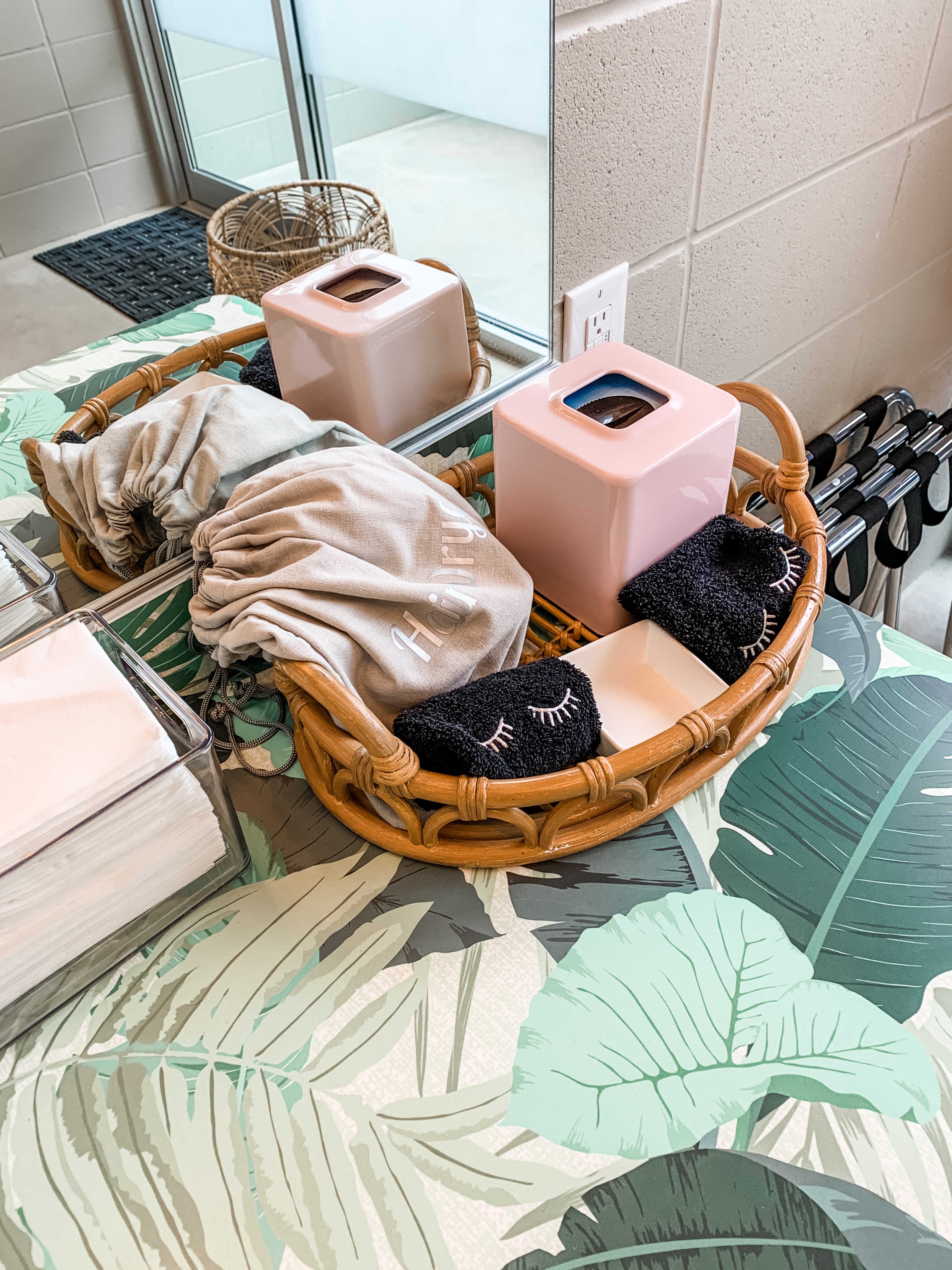 Blue Skies Retro Resort offers five Shasta trailers that each have a mini sink, record player, tv, super comfy mattress and so much more in a cozy retro space. Spend your day lounging by the pool and then freshen up for the night in your own massive private bathroom suite. Complete with robes, luggage racks, and a gorgeous outdoor shower, these bathrooms are the perfect pairing to your sweet dreamin’ Shasta trailer.