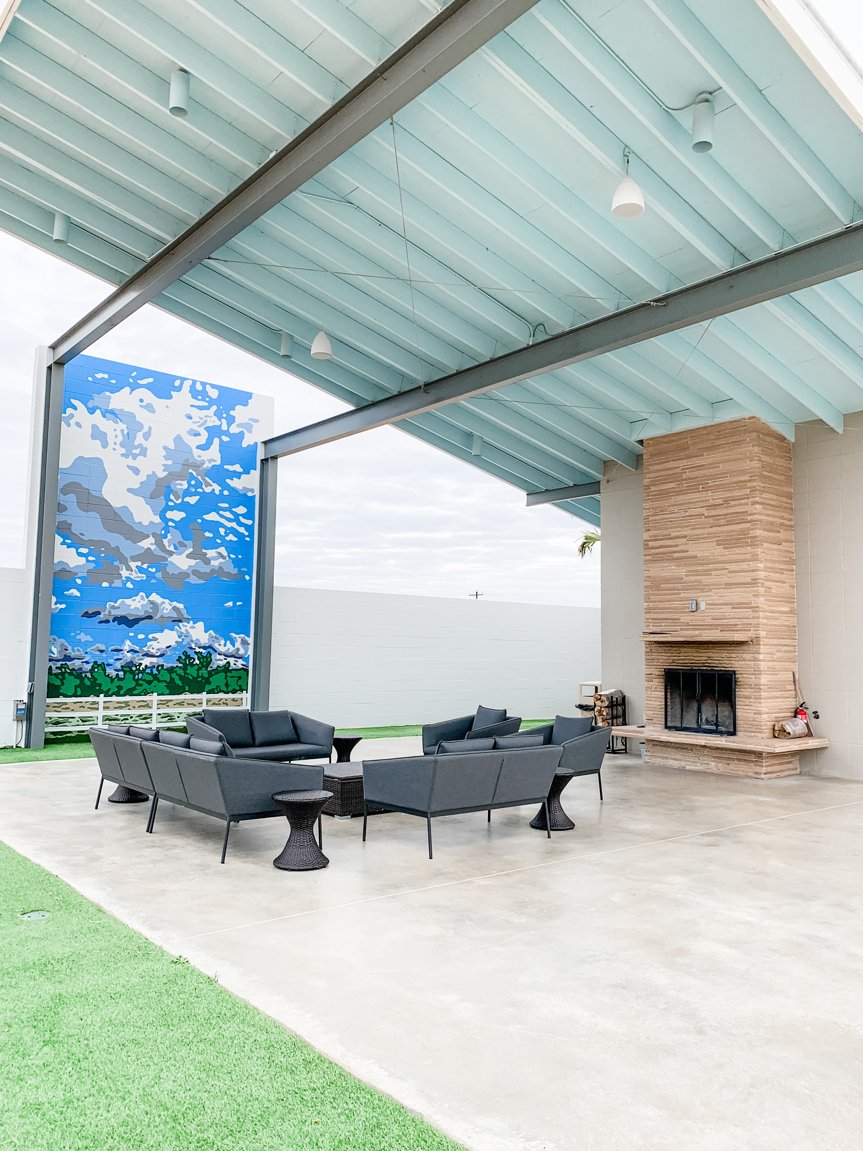 Outside of each trailer is a private yard, perfect for reading a book or enjoying a cocktail while watching the Texas sun set over the hills. After dark, relocate to the large outdoor fireplace and play charades or cook up dinner on the grill.