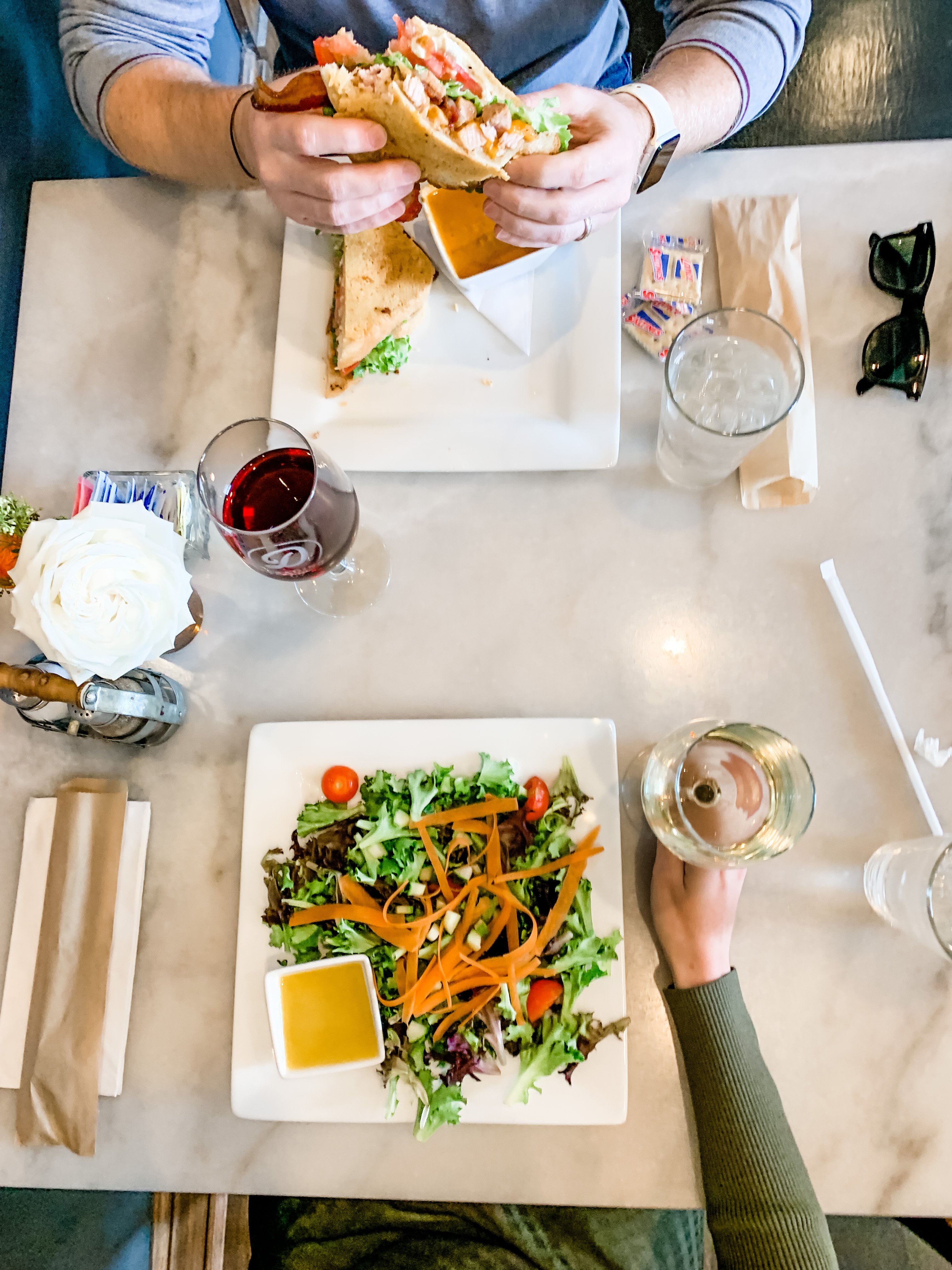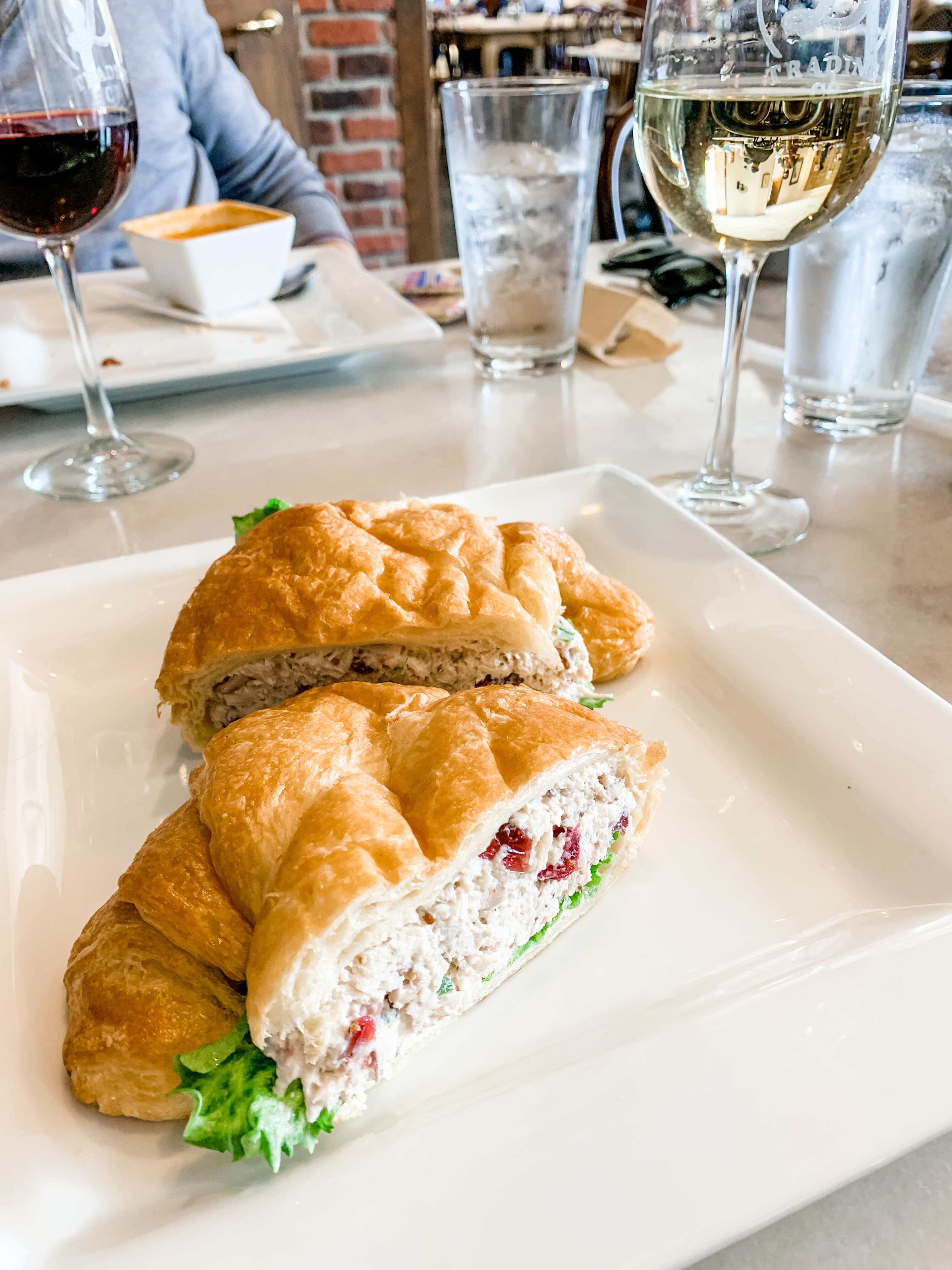 The staff was wonderful, offering wine pairings based on our menu selections and convincing us we could not leave without having their renowned Coconut Cream Pie (worth the calories!). I had the Chicken Salad Croissant and a Salad, the Hubs had the Parmesan Crusted Turkey Club with a Cup of Soup.